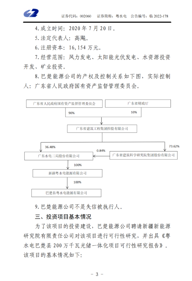 此項目已納入新疆維吾爾自治區新增政策性開發性金融工具支持市場化并網新能源項目清單,納入此次清單的市場化并網新能源項目視同備案。公告稱,截至目前,粵水電已建成投產的光伏發電項目總裝機852.28MW。