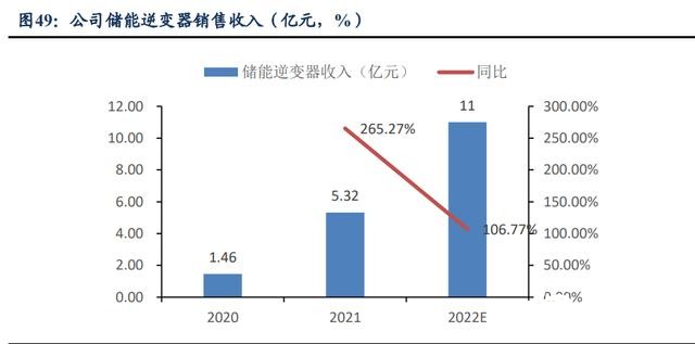 儲能逆變器出貨迅猛增長,預期翻倍增速。公司 2021 年儲能逆變器出貨 7.03 萬臺, 實現銷售收入 5.32 億,較上年同增 265.27%;2022 年 Q1 儲能逆變器出貨 2.7 萬臺,銷 售收入 1.7 億,同增 193.92%;預計 2022 年翻倍增長,全年出貨量 14 萬臺以上,銷售 收入 11 億+,同增 100%+。儲能業務發展勢頭迅猛。