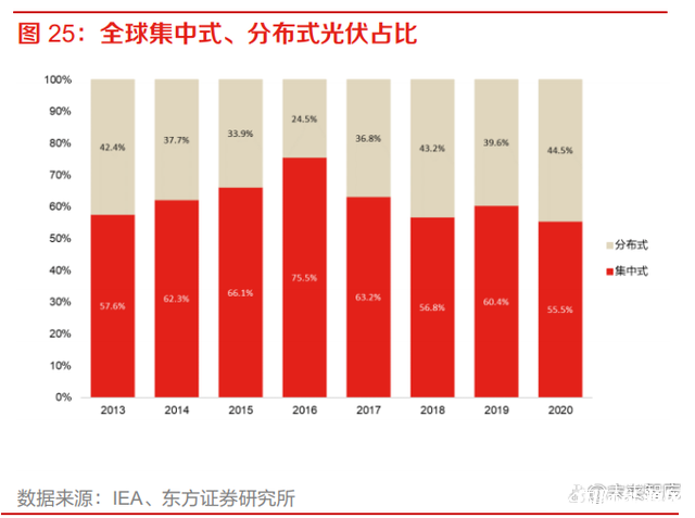 分布式占比:全球光伏裝機增長,分布式光伏占比有望持續提升