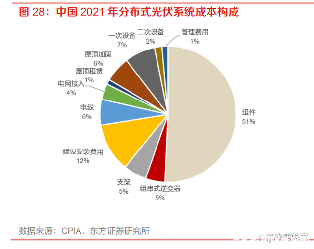 2017 年以 來,全球分布式光伏新增裝機規模占比相對之前有較大的回升,主要原因在于:一是歐美、澳洲 以及南美等國家和地區環保意識和清潔能源意識增強,光照資源豐富;二是在前述眾多國家和地 區,光伏發電已逐步具有成本優勢;三是政府政策支持的推動作用。據 IEA 預測數據,2022 年分 布式占比短期下降,我們認為主要系2021年光伏組件處于價格高位,抑制了價格敏感度更高的集 中式項目推行,導致價格敏感性相對較低的分布式裝機份額提升,在短期集中式需求彈性恢復過 程中,不排除在比重上分布式占比小幅波動的情況出現。但后續基于分布式光伏發電就近發電、 就近并網、就近轉換、就近使用,在避免長距離輸送造成的電能損耗方面等方面的優勢,全球分 布式光伏新增裝機占比有望持續提升。