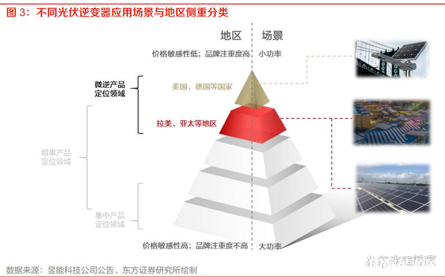 產品定位光伏中小功率段的應用場景,適配價格敏感度相對不高、更注重應用屬性與品牌的地區。 微型逆變器應用顆粒度相較當前市場主流組串式逆變器或集中式逆變器方案而言較細,在相對小 功率分布式應用場景在安全性、發電效率、可靠性以及靈活性等方面存在優勢;但同樣式因為其 較細的顆粒度,導致其歷史維度上單瓦價格處于較高位置。