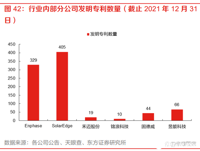 微型逆變器多體架構迭代行業領先,注重研發專利積累。自海外企業 Enphase 于 2009 年首次實 現單體微型逆變器大批量商業化運用之后,公司在 2011 年即推出首款單體微型逆變器,是國內最 早實現微型逆變器商業化運用的廠商之一。后續公司在單體微型逆變器的基礎上不斷更新迭代, 最早實現多體微型逆變器及三相微型逆變器的大批量商業化運用,在微型逆變器主流產品的研發、 推出時間上均領先行業。通過多年研發創新積累,公司已形成了 19 項具有自主知識產權的組件級 電力電子設備的核心技術,截至 2021 年 12 月 31 日公司取得授權專利 116 項,包括發明專利 66 項(其中 4 項已取得美國 PCT 專利)、實用新型專利 32 項、外觀設計專利 18 項,20 項軟件著作 權。