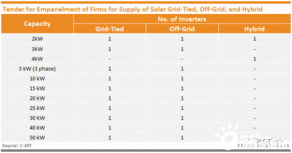 投標方過去三個財政年度的平均年營業額必須達到500萬印度盧比(約合67248美元)才有資格參加投標。太陽能逆變器的設計、采購和施工(EPC)公司、制造商和經銷商均可投標。