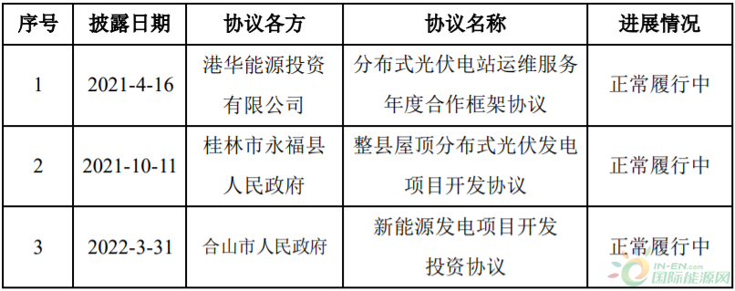 除了與桂林市永福縣合作,近三年來(lái)潤(rùn)建股份還相繼港華能源投資有限公司、合山市人民政府均有新能源源發(fā)電項(xiàng)目開(kāi)發(fā)投資協(xié)議簽訂,目前正在履行中。