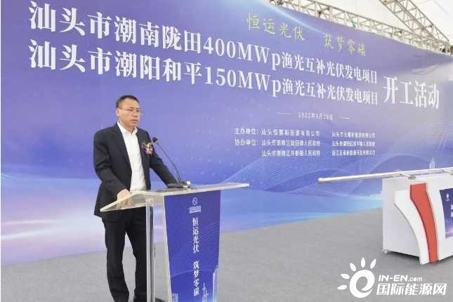 在“碳達(dá)峰、碳中和”的行業(yè)背景下,新能源產(chǎn)業(yè)迎來(lái)了重大的發(fā)展機(jī)遇。現(xiàn)代能源集團(tuán)肖立總經(jīng)理在致辭中表示,汕頭地區(qū)發(fā)展光伏產(chǎn)業(yè)具有得天獨(dú)厚的天然優(yōu)勢(shì),隴田、和平漁光互補(bǔ)光伏發(fā)電項(xiàng)目是集團(tuán)精心謀劃的好項(xiàng)目,將助力汕頭地區(qū)加快構(gòu)建清潔低碳、安全高效的現(xiàn)代能源體系,又將助力當(dāng)?shù)貪O業(yè)增效、漁民增收、農(nóng)村增綠,推動(dòng)美麗鄉(xiāng)村再升級(jí),為區(qū)域?qū)崿F(xiàn)“雙碳目標(biāo)”做出重要貢獻(xiàn)。同時(shí)真誠(chéng)希望汕頭市、區(qū)相關(guān)政府部門、鎮(zhèn)村,項(xiàng)目合作方和參建單位繼續(xù)對(duì)項(xiàng)目建設(shè)和運(yùn)營(yíng)給予大力支持和幫助,把本項(xiàng)目建設(shè)成為新能源精品樣板工程。