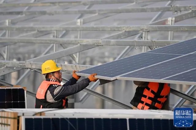 1月5日,建設(shè)者在華電海晶光伏項目B標(biāo)段施工。