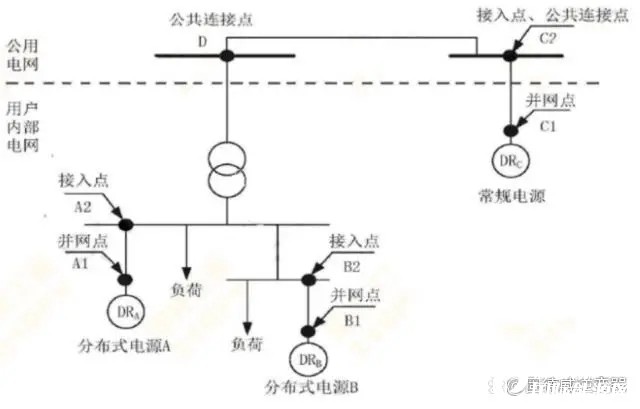 專線接入:分布式電源接人點處設置分布式電源專用的開關設備(間隔) ,如分布式電源直接接入變電站、開閉站、配電室母線,或環網柜等方式。