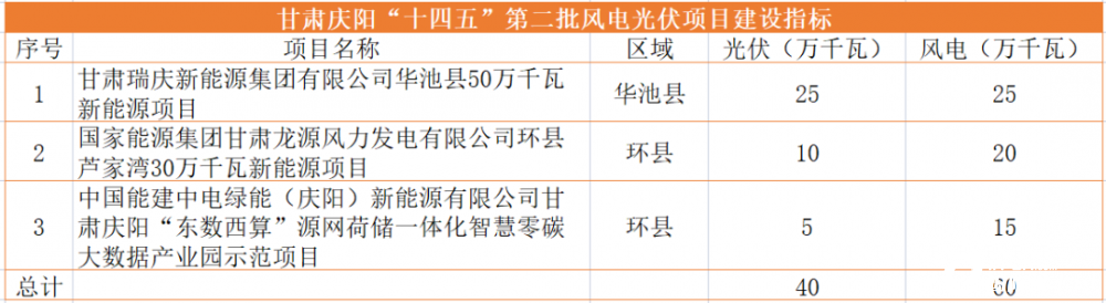近日,甘肅省慶陽市擬分配“十四五”第二批風電光伏項目建設(shè)指標已出,共計100萬千瓦,其中風電60萬千瓦,光伏40萬千瓦。